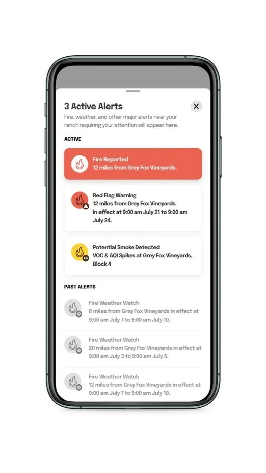 “As a Sonoma-county grower, I am extremely worried about the effects of wildfires and over the past several growing seasons Agrology has enabled me to take quick action when fires break out. I use the Agrology app daily and during fire season I find the Fire Map feature incredibly useful and actionable. I can pinpoint exactly where the threat is coming from and plan accordingly.” - Riggs Lokka, Emeritus Vineyards.